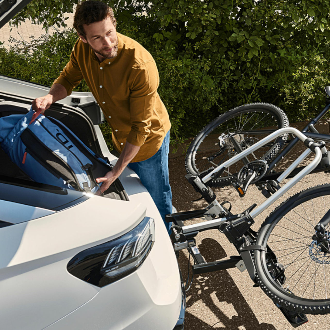neue ID.7 ausreichend Platz für lange Reisen: Transportieren Sie Fahrräder und Skier noch einfacher, dank der schwenkbaren Anhängevorrichtung und Dachträger für den ID.7.